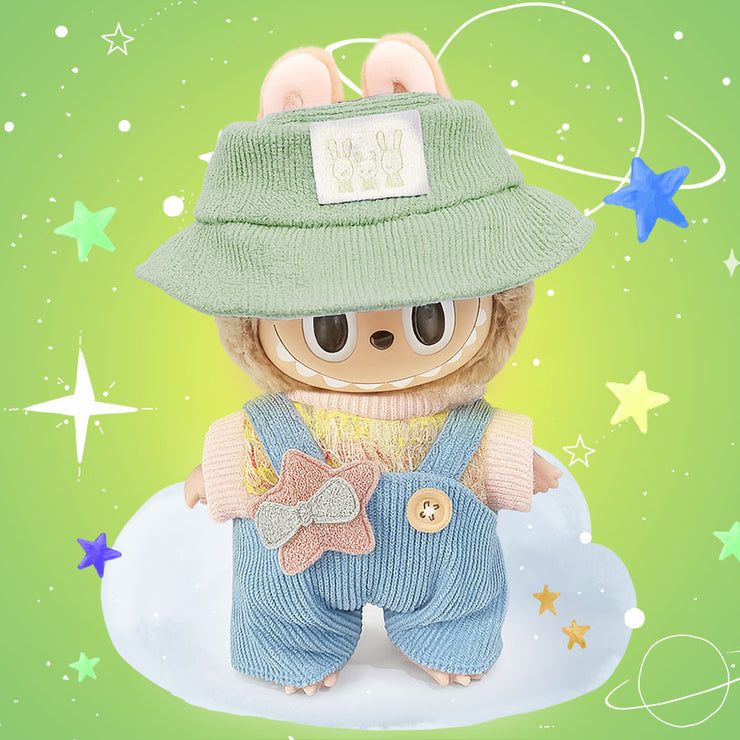 Fresh and modern, this suit with green hat combines casual charm with a neat, put-together style. Great for versatile displays.